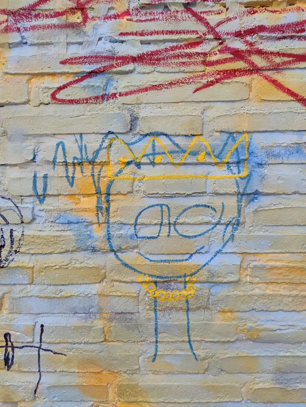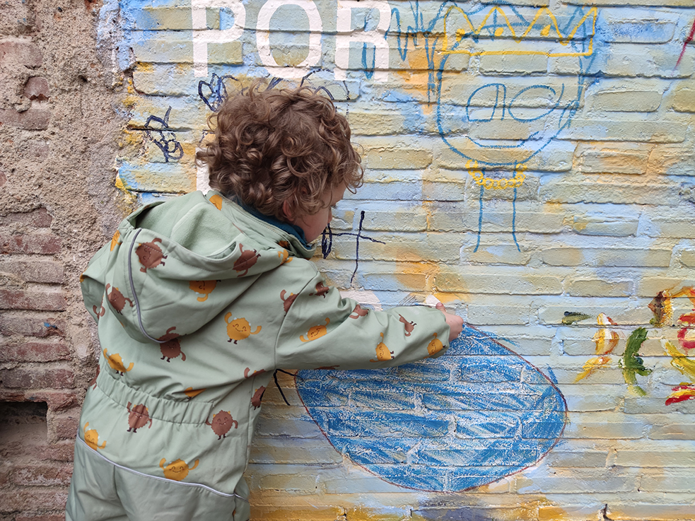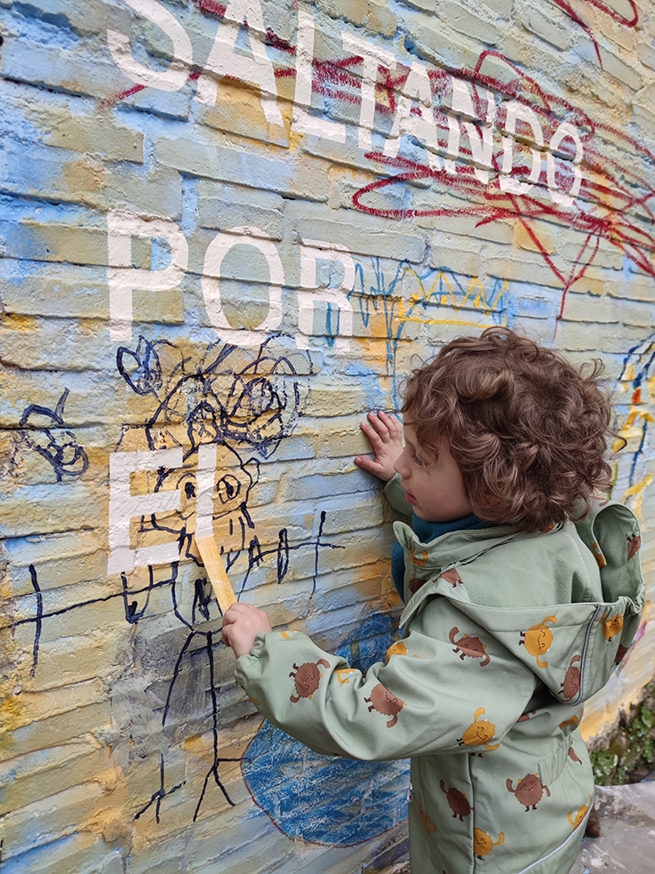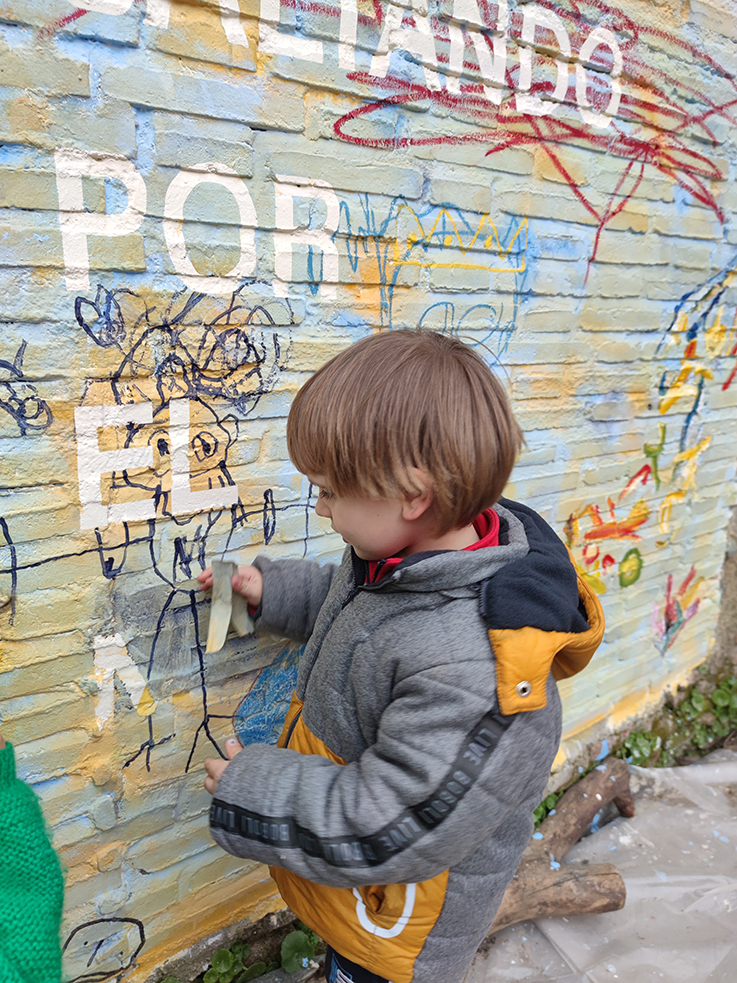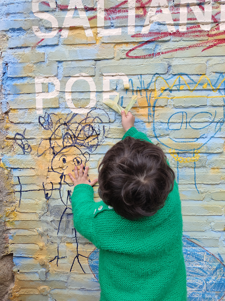 Mural creado a partir de dibujos infantiles de niñas y niños de dos a tres años del barrio de Lavapiés, compañeros/as de la niña