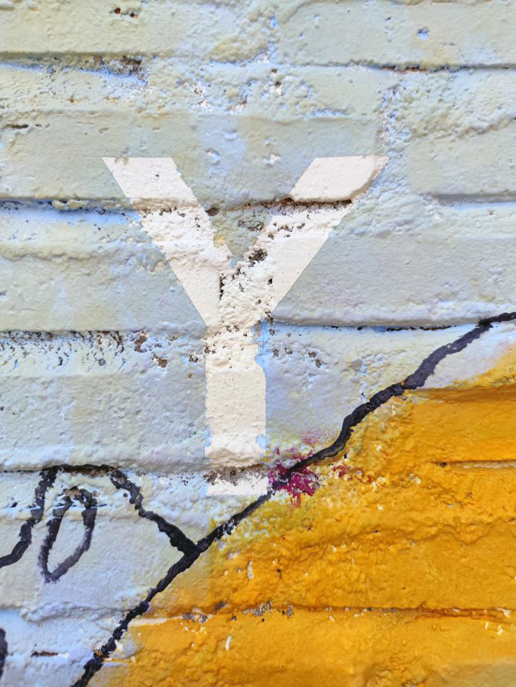 The author recalls a game from her childhood and reproduces it with the power of her imagination. The wall she evokes is spontaneously associated with the mural's own support. However, the fragment of poetry is above all the expression of a circular thought, that of an obsessive question that remains unanswered in the face of the disproportion of such an act.