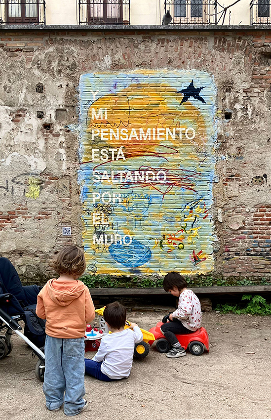 Before embarking on the visual composition of the mural, I had to find a fragment of poetry that was metaphorical enough to fit a space dedicated to childhood, and open enough to allow several degrees of reading.